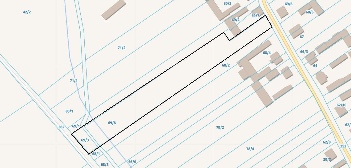 Działka w kształcie prostokąta o wymiarach 28 x 237 (na początku działka jest węższa, ale później się rozszerza do 28 metrów). Teren częściowo nadaje się pod budowę domu, reszta działki to przestrzeń do Twojej aranżacji (na końcu działki przepływa strumyk, który możesz wykorzystać na wykopanie stawu i przygotowania części rekreacyjnej tej nieruchomości.