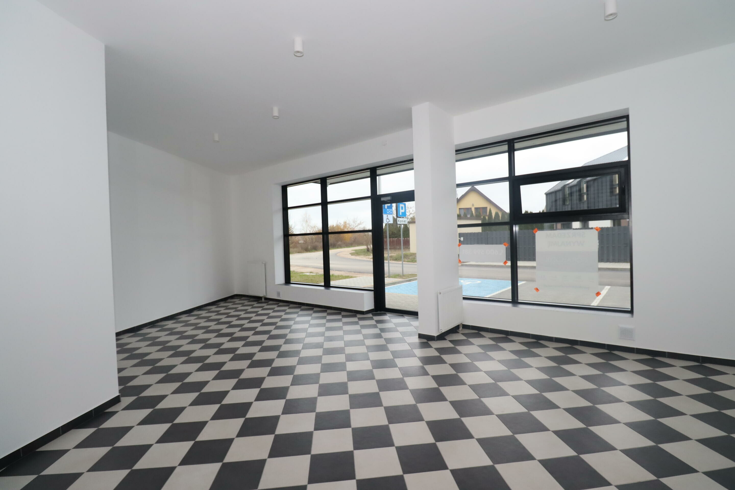 - przestronnego pomieszczenia z dużą witryną i wejściem od ulicy