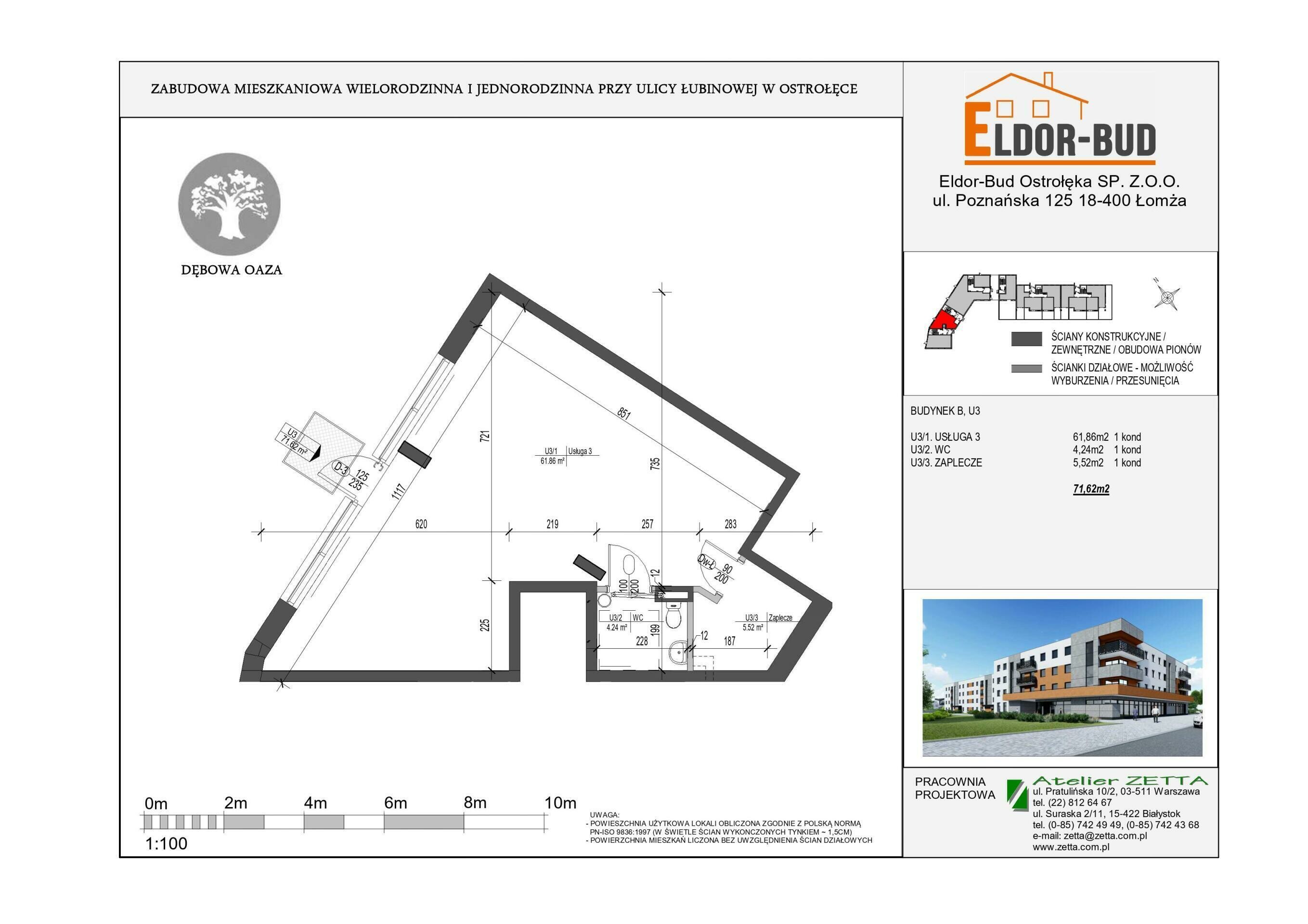 U3 - powierzchnia całkowita 71,62 m2- składający się z: