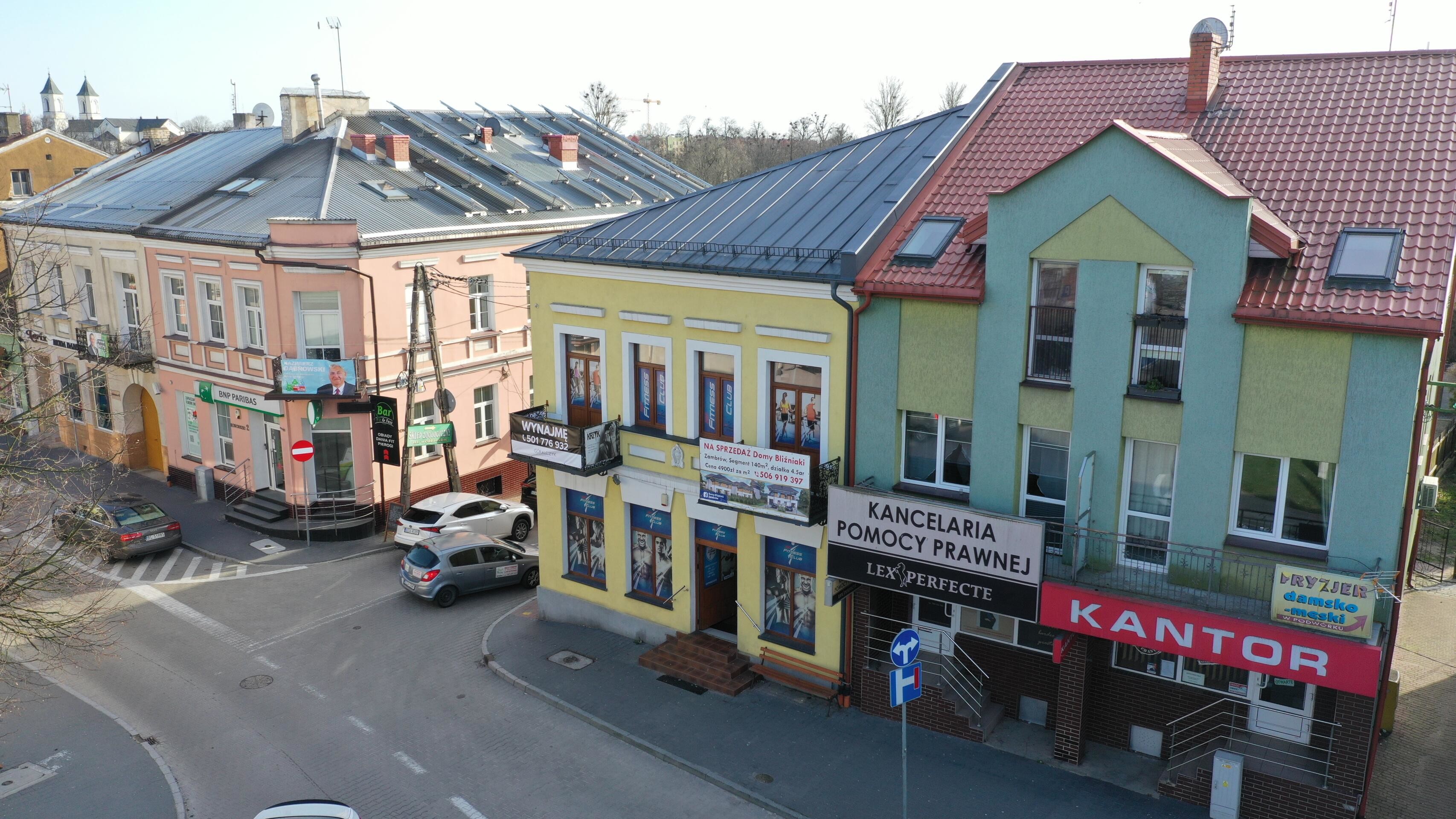 Do wynajęcia lokal w kamienicy przy Placu Sikorskiego 10 w Zambrowie, znajdujący się w samym centrum miasta o łącznej powierzchni użytkowej 582,28 m2.