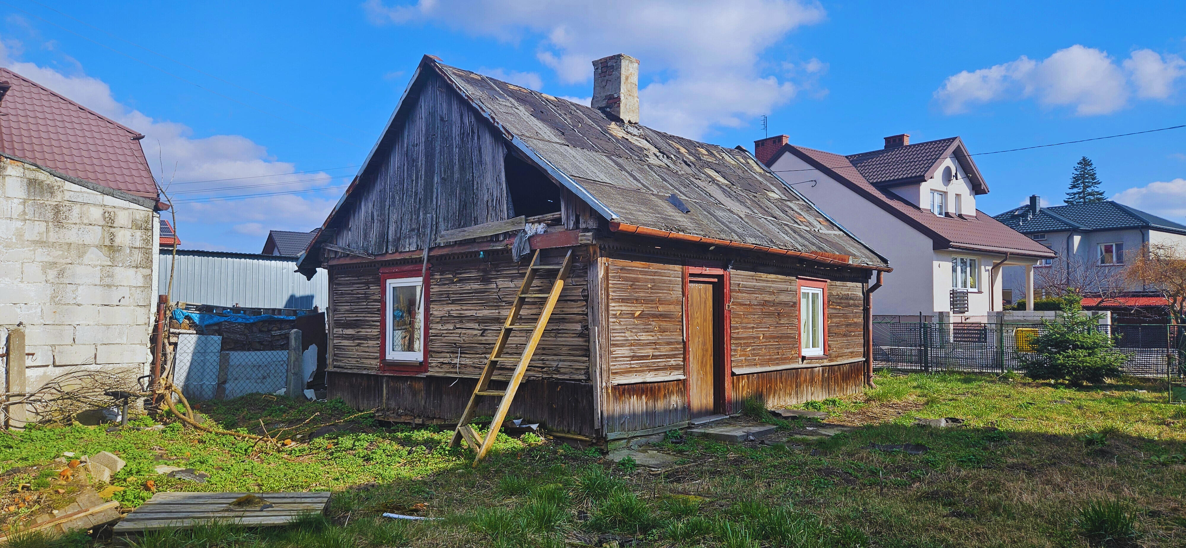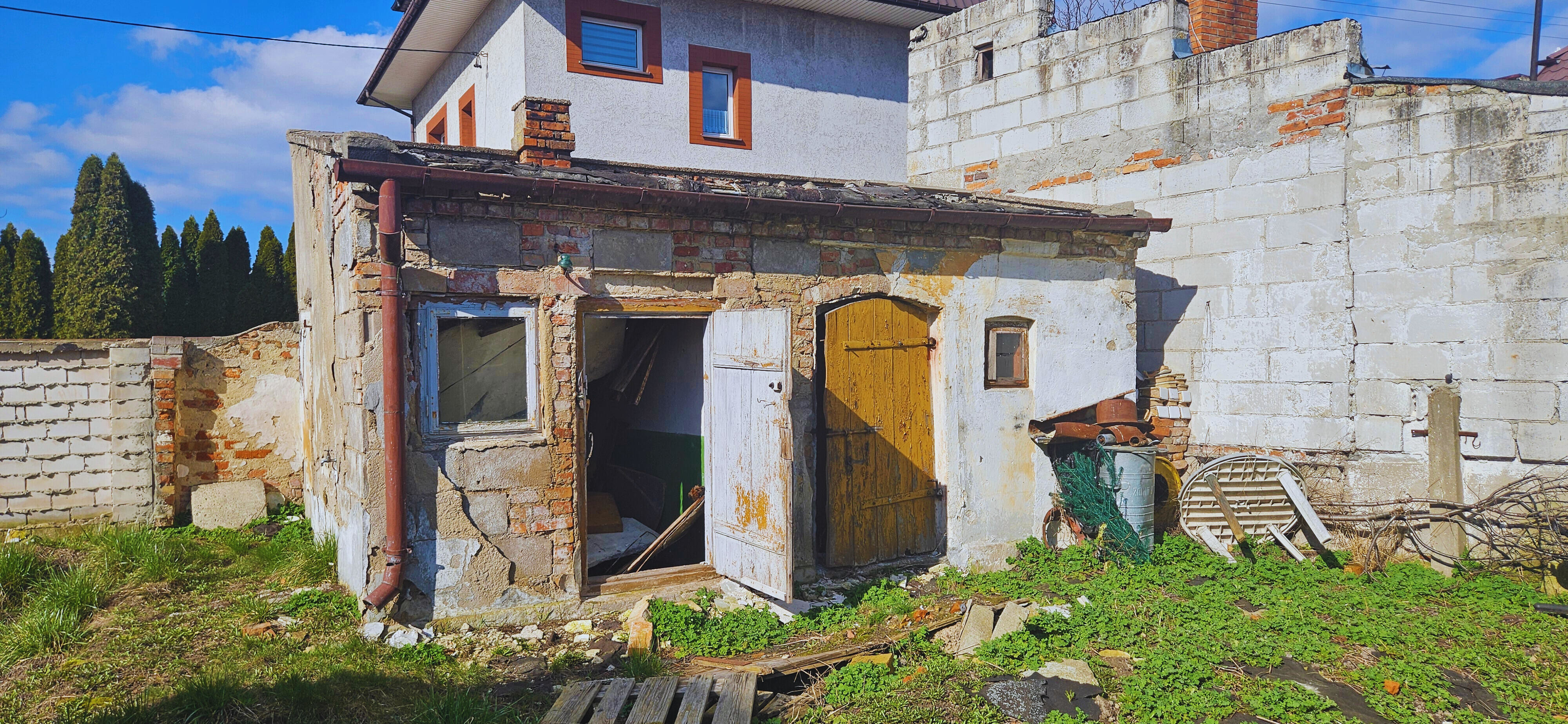 Obecnie na działce znajduje się stary dom drewniany o powierzchni około 40 m2 oraz budynek gospodarczy o powierzchni około 20 m2 - przeznczone do rozbiórki.