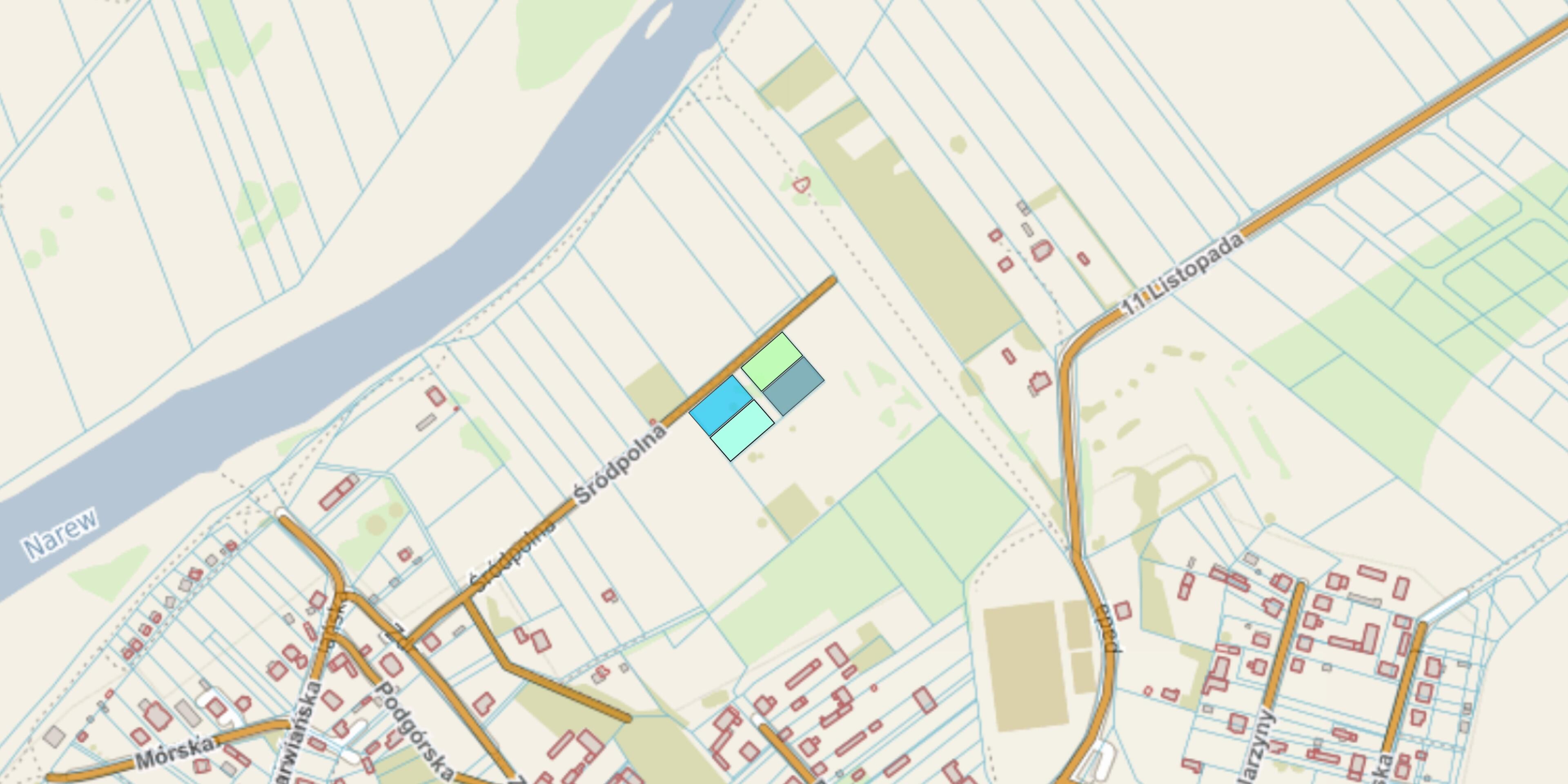 Do wyboru cztery działki budowlane przy ulicy Śródpolnej w Nowogrodzie w bardzo bliskiej, ale bezpiecznej odległości od rzeki Narew.
