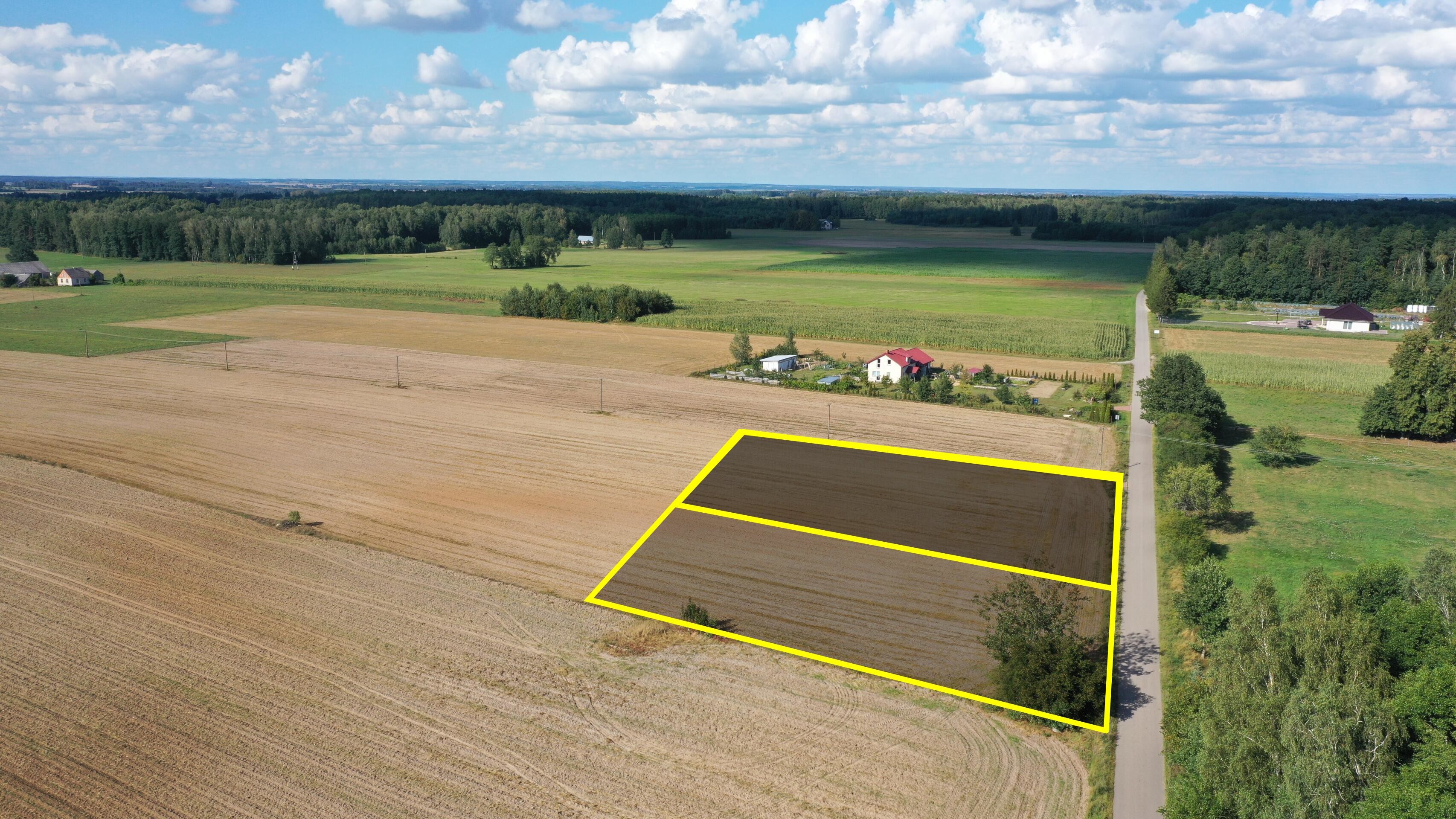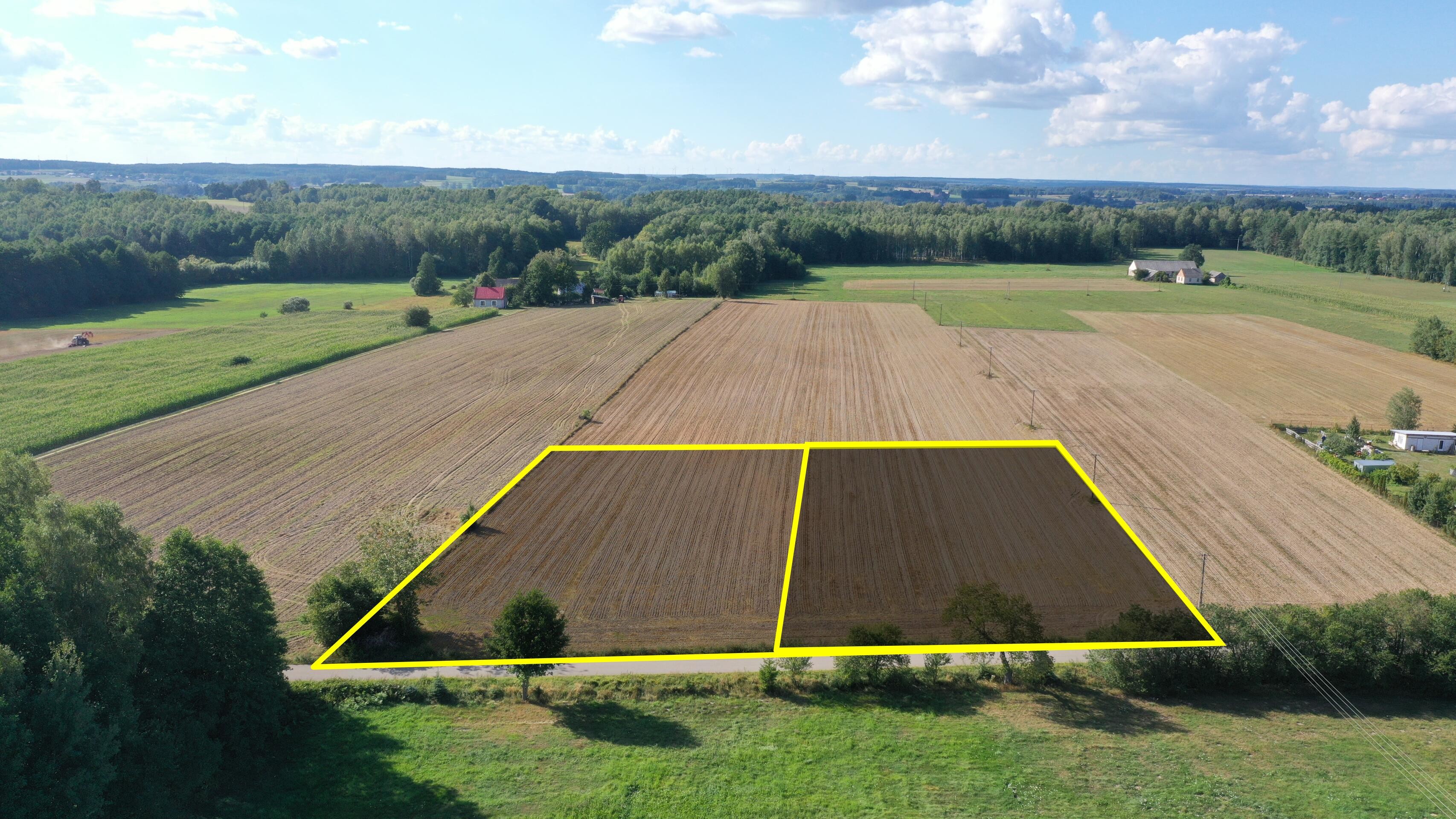 Działki znajdują się w spokojnej okolicy, z dogodnym dostępem do większych miast, co czyni je idealnym miejscem zarówno do życia, jak i prowadzenia działalności gospodarczej.