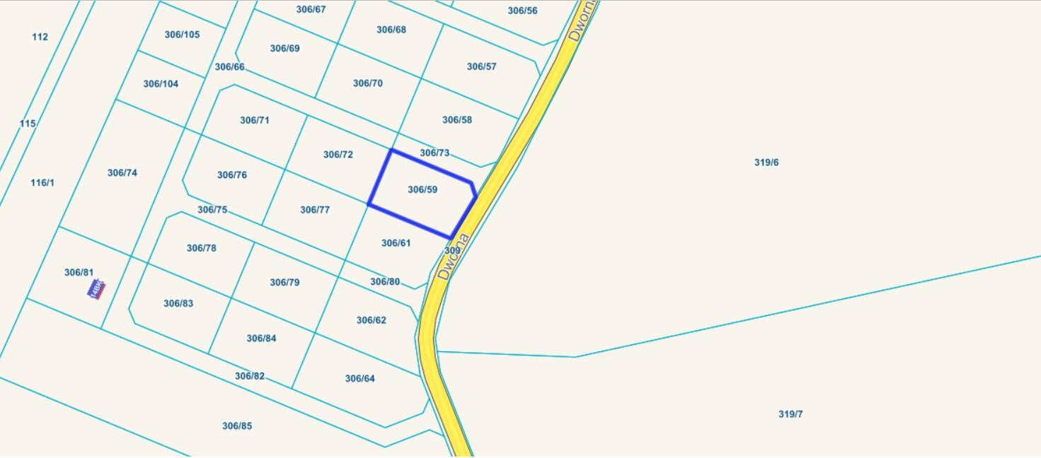 Numer geodezyjny działki to 306/59, a wymiary to około 26 na 41 metra.