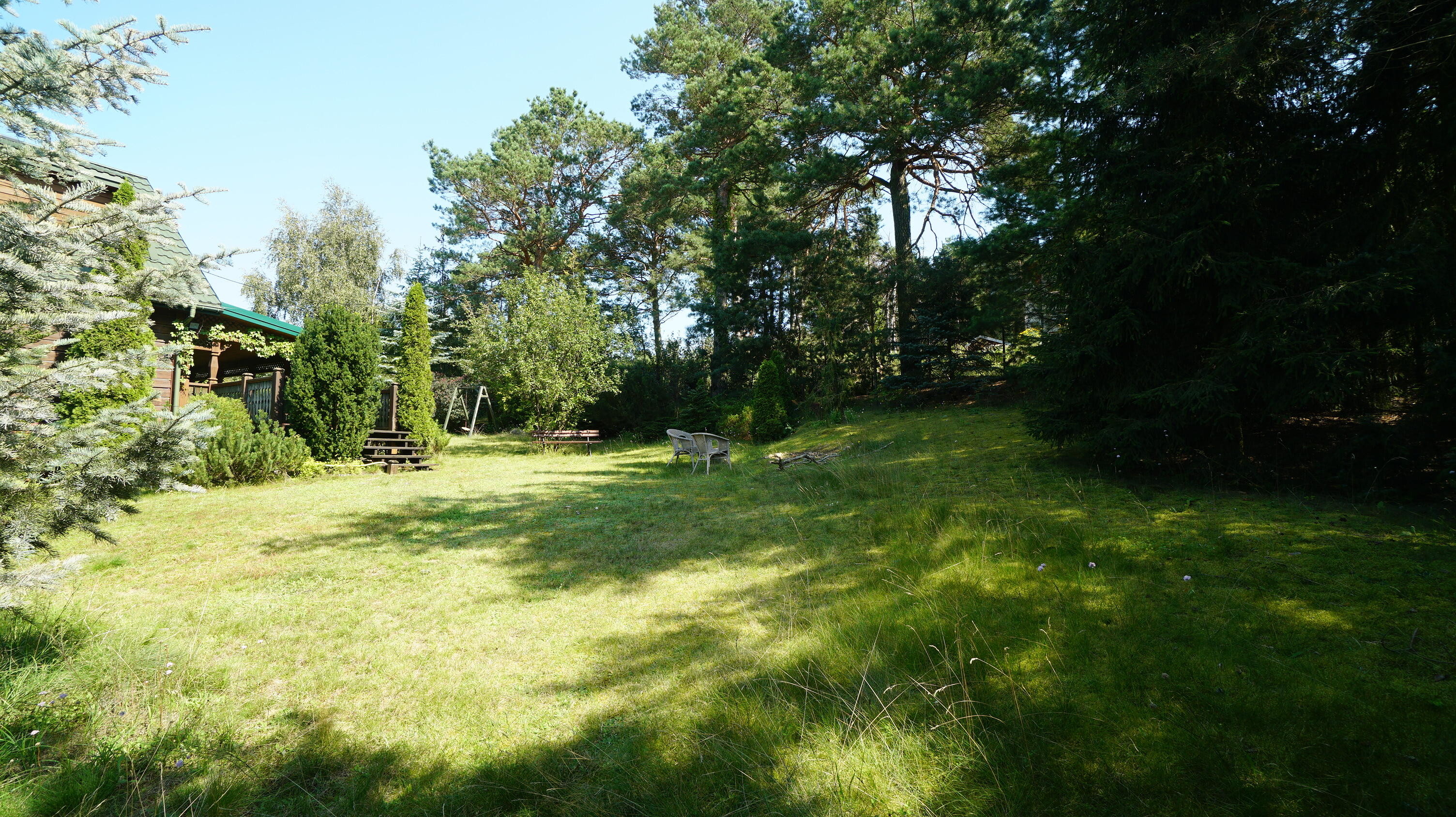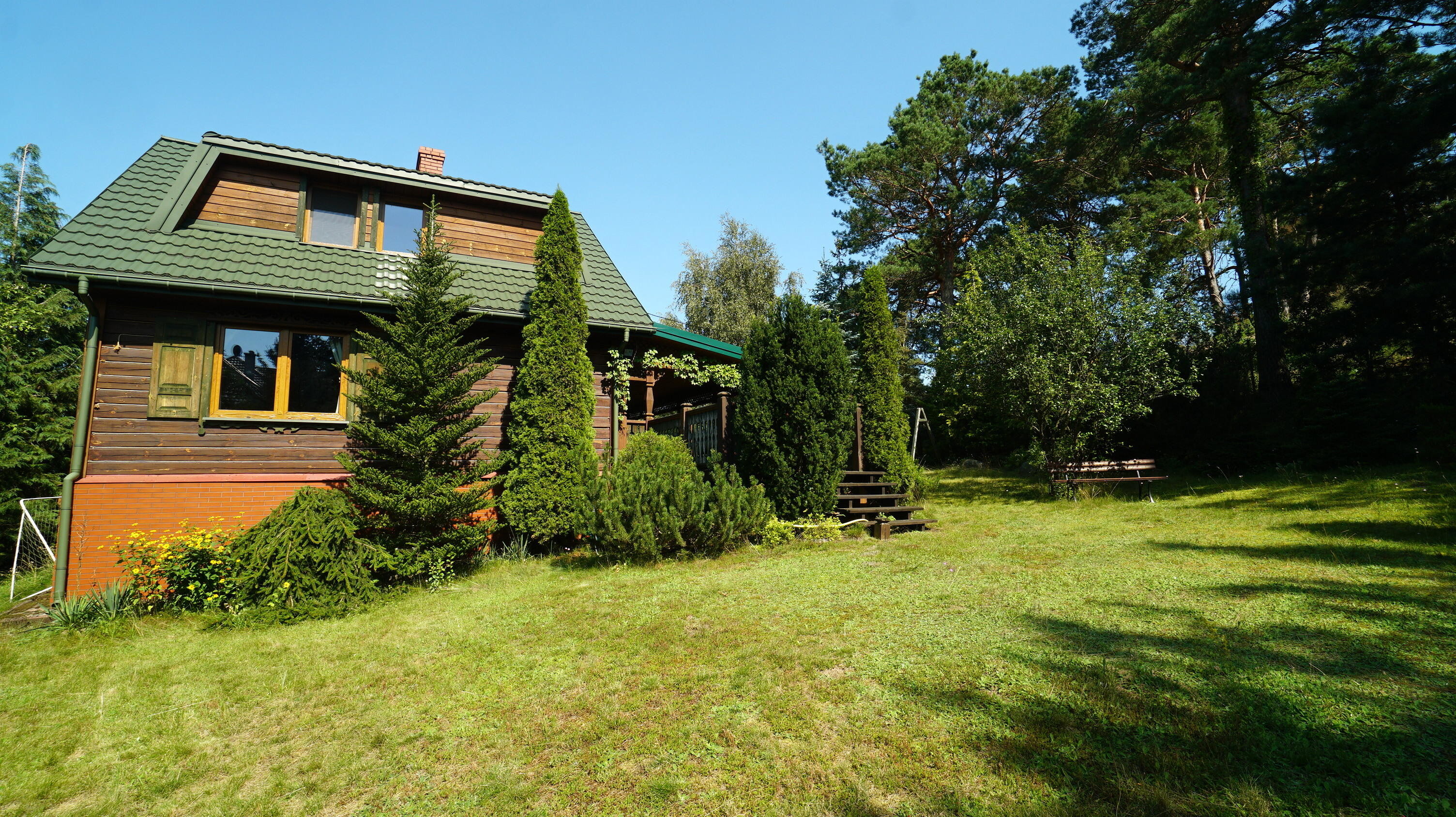 Dom posadowiony jest na pięknie urządzonej działce o powierzchni 1202 m2 (nr geodezyjny 438/2). Jego powierzchnia użytkowa to około 91 m2, nie wliczając w to piwnicy, w której znajduje się duży garaż i duże dodatkowe pomieszczenie.