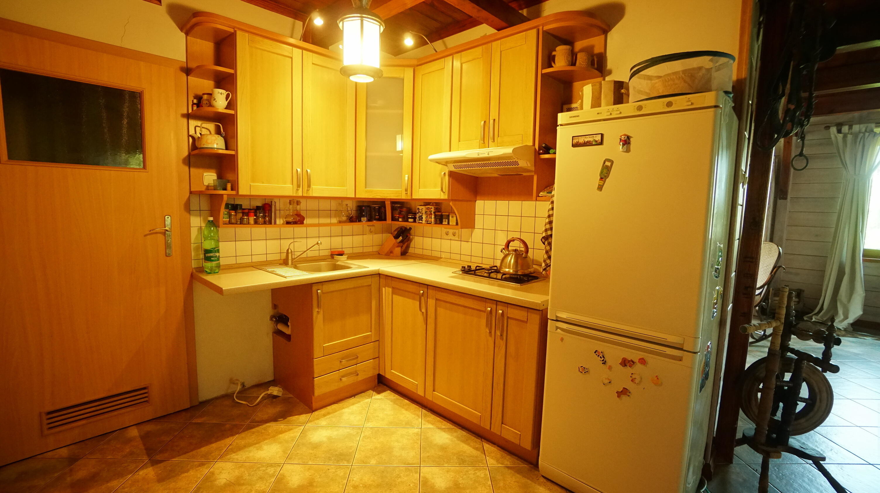 Dom pochodzi z 2001 r. i jest w bardzo dobrym stanie. Zbudowany jest z bala o grubości 15 cm i ocieplony od wewnątrz wełną o grubości 5 cm. Dom przeszedł kilka lat temu gruntowny remont z zewnątrz. Zostało też wymienione pokrycie dachu, na nową blachodachówkę. Ponadto podczas tego remontu zostało ocieplone wełną poddasze, zarówno przy krokwiach, jak i sam strop. Źródło ogrzewania stanowi piękny kominek posadowiony w sercu tego urokliwego domu. Posiada on kanały rozprowadzające ciepło na pomieszczenia na dole i do sypialni na górze.