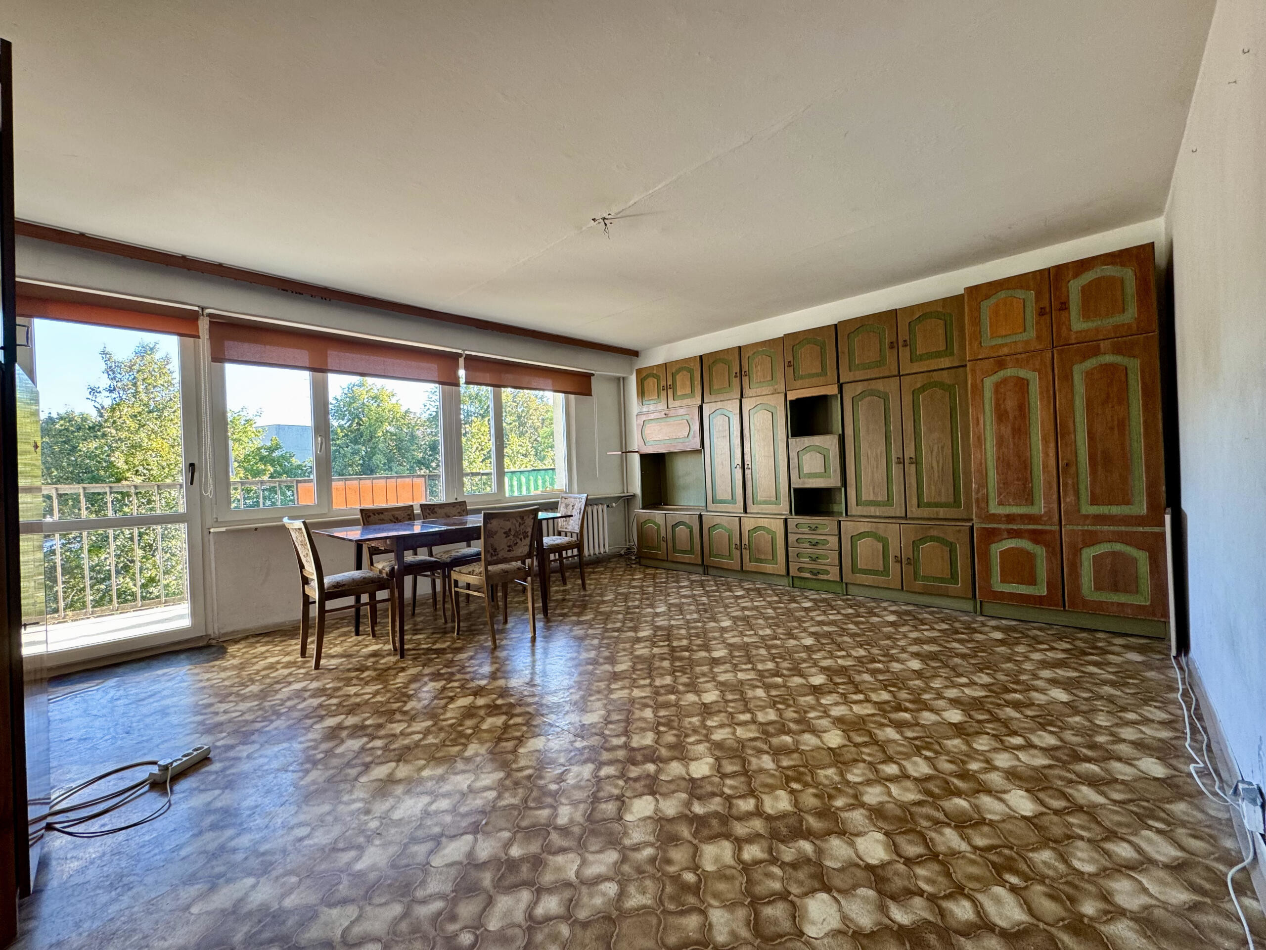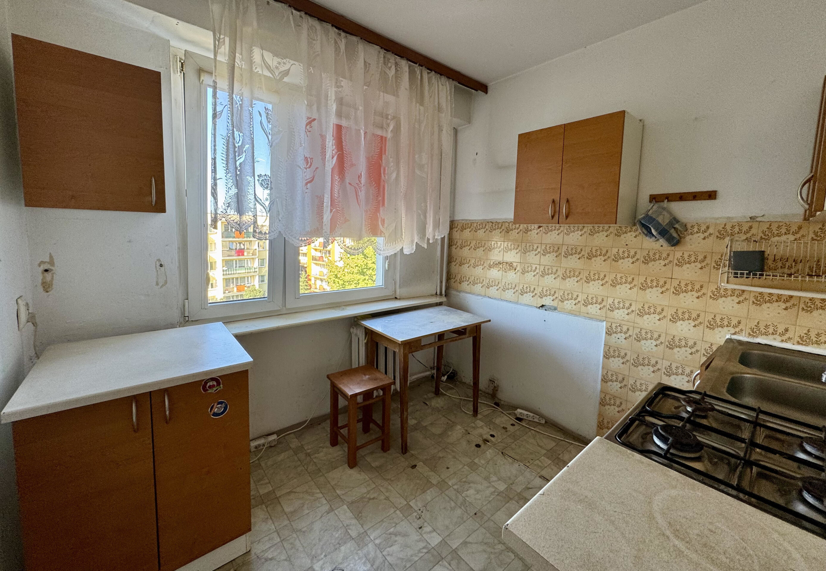 Mieszkanie jest środkowe i ciepłe, dwustronne, posiada dużą loggię oraz piwnicę. Wymaga generalnego remontu, co daje nowemu właścicielowi pełną swobodę aranżacji według własnego stylu i potrzeb.