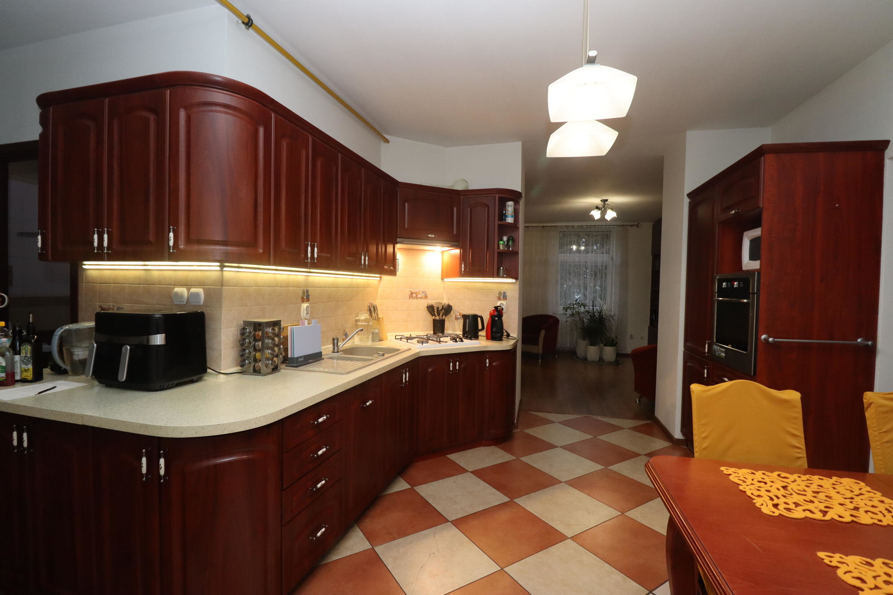 - umeblowana kuchnia z częścią jadalnianą