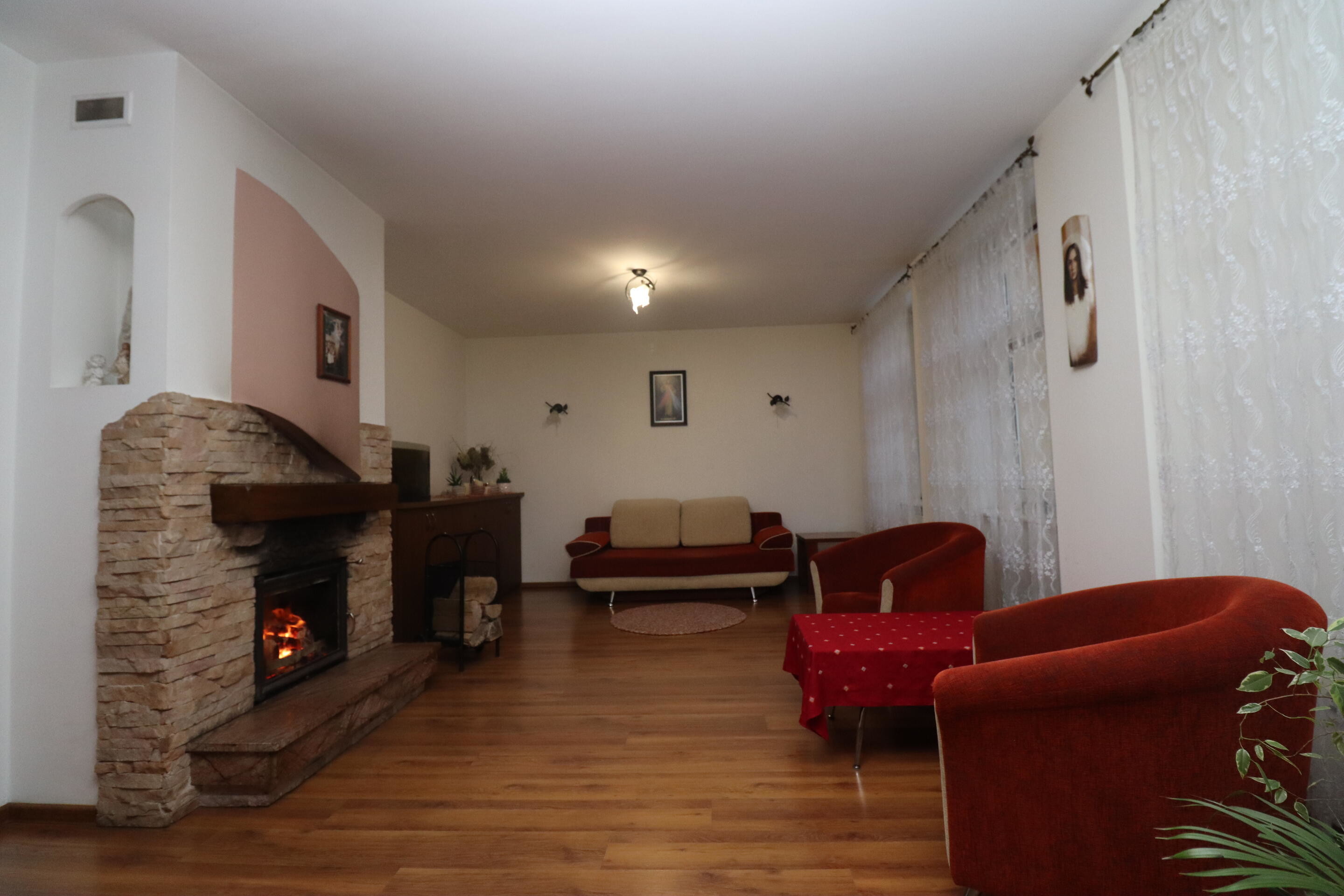 - duży i ustawny salon z kominkiem, biblioteczką, a także wyjściem na taras
